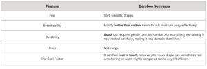 Bamboo is popular for its luxuriously soft, silky texture. However, it’s important to note that bamboo fibre is typically heavily processed (often into viscose or rayon) before it can become bedding, losing some of the “natural” benefits.