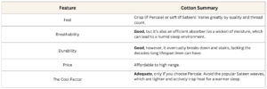 Cotton is the most familiar bedding material. It can offer excellent value, but its cooling abilities are dependent on a very specific weave. It often absorbs and retains sweat, leading to that sticky, damp feeling in the peak of summer.