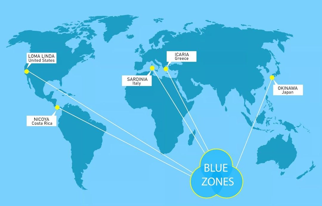 Known as the Blue Zones, these places: Ikaria (Greece), Sardinia (Italy), Okinawa (Japan), Nicoya (Costa Rica) and Loma Linda (California) offer a simple truth: longevity isn’t about luck or genes. It’s about daily rhythm, purpose, and connection.